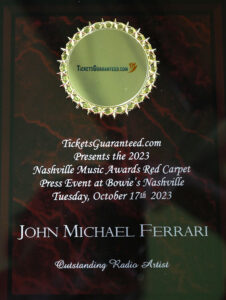 Congratulations John Michael Ferrari – “Outstanding Radio Artist” of the Year by Nashville Music Awards 2023.